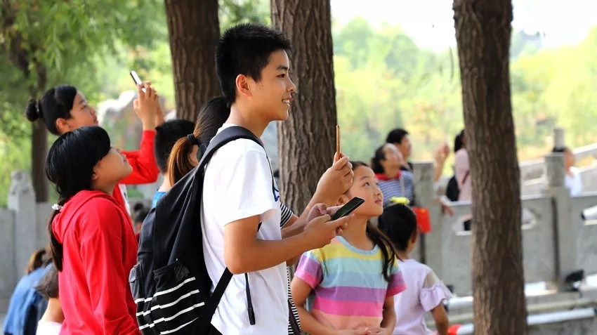 阅兵直播吸引众多游客驻足观看