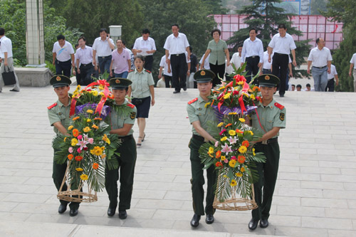 揭牌仪式后,省市县有关领导向鲁西南战役革命烈士纪念碑敬献敬献了花篮,瞻仰了王杰烈士纪念馆,缅怀革命先烈的丰功伟绩,进一步增强了为党的事业奉献一切的信心和决心。