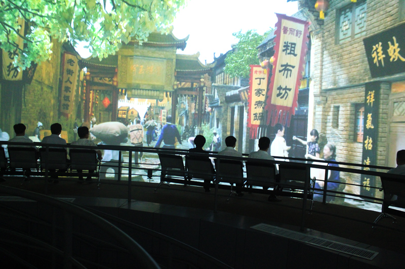 巨幕全景馆采用国内最先进的声光电技术,是国内首家全部采用3D技术制作的全景馆,在观看羊山战役全景电影时,人们在圆形观众厅的中央区域,被四周环绕的广阔画面所包围,再加上与影片内容相一致的全方位立体声效果的配合及相应的互动活动,能产生极强的身临其境感,带给参观者极大地震撼。